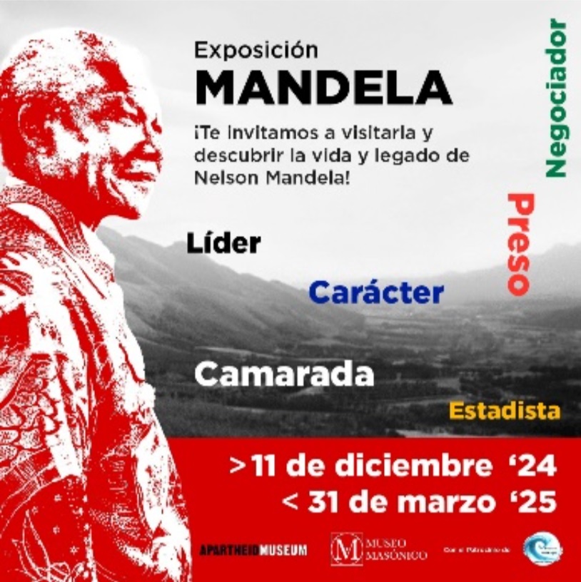 Con motivo de la conmemoración del 76° aniversario de la Declaración Universal de los Derechos Humanos, el Museo Masónico de la Gran Logia de Chile recibe, del Museo del Apartheid, y con el patrocinio de la Embajada de Sudáfrica y la Fundación FEGASQUE, la exposición "Mandela", para rendir homenaje al legado y la vida de Nelson Mandela. ¡Te esperamos!