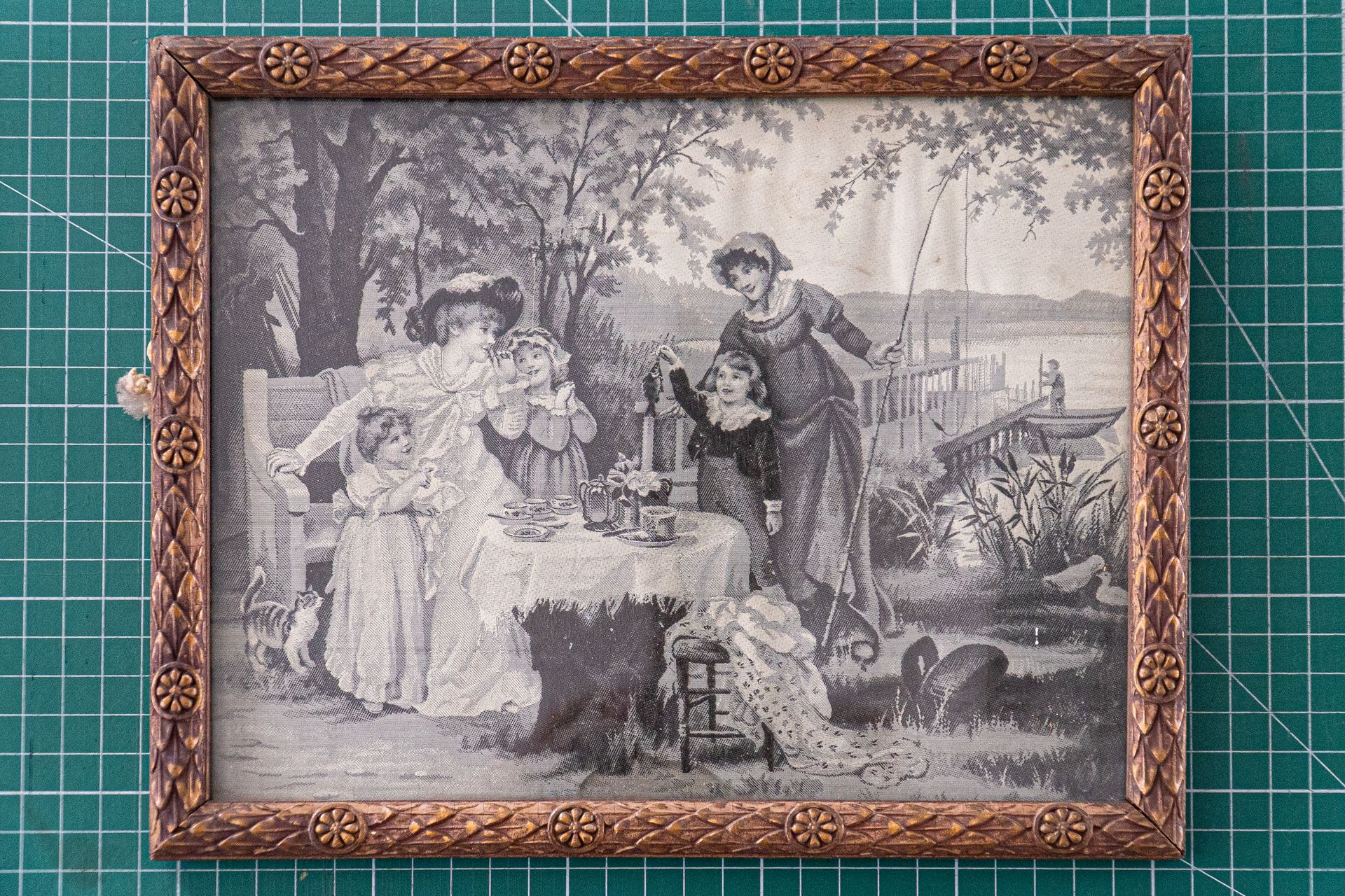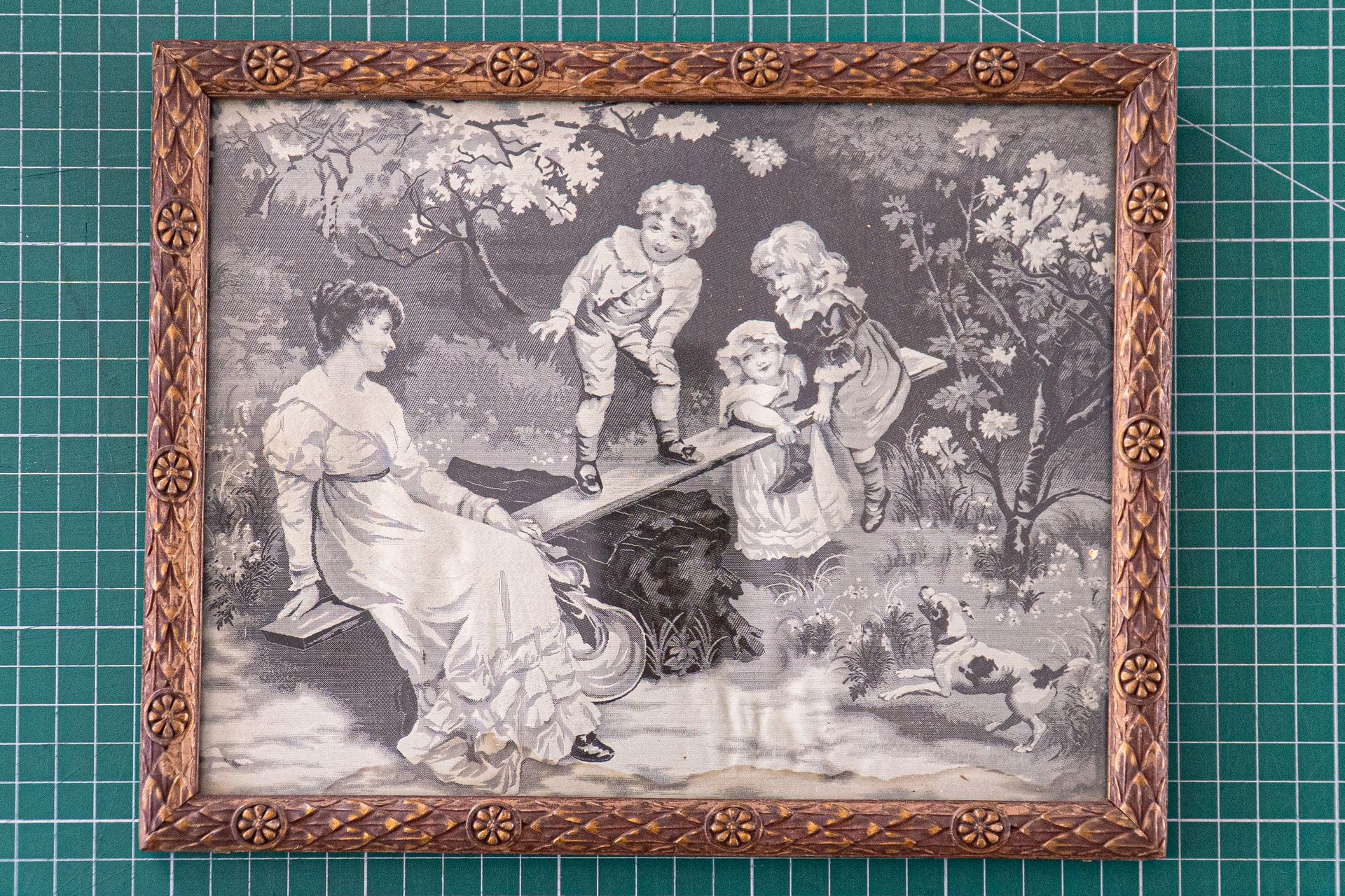 Una última entrega fueron dos láminas enmarcadas en madera, en tela de seda,“ Niños Jugando”, año estimado 1880 aproximadamente, que provenían de su abuela materna doña Elsa Renard Torres. Enmarcados por “Vidriería Scheggia Belgeri Cia Ltda” de la ciudad de Valparaíso.